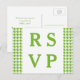 Postales de respuesta Boda Houndstoth, sencillo pero elegante, con un fondo de gafas verde y blanco a la moda. Fácil de personalizar con los detalles de su boda. Para obtener más opciones de personalización, haga clic en el botón Personalizar.