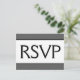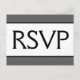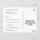 Este respetable y lujoso diseño de tarjetas postales RSVP incluye el mensaje "RSVP" en la parte delantera. También incluye un formulario RSVP personalizado en la parte posterior para que el destinatario lo complete, junto con una dirección personalizada a la que se enviarán por correo las tarjetas RSVP completadas. Tarjetas RSVP como esta pueden ser usadas para averiguar quién asistirá a una fiesta de cumpleaños, un fiesta de retiro, una ducha de boda o algún otro evento.