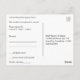 Este antiguo y clásico diseño de postales R.S.V.P. presenta el mensaje "R.S.V.P." en la parte delantera, junto con una descripción personalizada de eventos/ocasión. También incluye un formulario RSVP personalizado en la parte posterior, junto con una dirección personalizado a la que se enviarían las tarjetas RSVP completadas. Tarjetas RSVP como esta podrían ser usadas para averiguar quién asistirá a una ducha de boda, una recepción de boda, una fiesta de graduación, una fiesta de cumpleaños o alguna otra celebración.