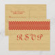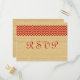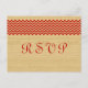 Postal RSVP de la moderna y moderna Boda Rustica de Chevron con fondo de textura de carpintero impreso en arte digital y un patrón zig zag de rayas de chevron rojo oscuro. Este diseño es perfecto para una boda rústica y elegante. Fácil de personalizar, simplemente añada los detalles de su boda. Haga clic en "Personalizar" para encontrar más opciones de personalización.