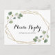 Esta carta dorada geométrica del follaje, la postal rsvp, es perfecta para un boda rústico. El diseño presenta ramas de eucalipto botánico y verde a mano y hojas adornan un marco elegante.