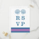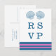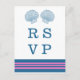 Elegante y clásico, postales de respuesta Boda de las conchas náuticas con un par de conchas simples y un conjunto de rayas en azul marino oscuro y rosa. Esta tarjeta postal con temática náutica RSVP se puede personalizar fácilmente con los detalles de tu boda. Para obtener más opciones de personalización, haga clic en el botón Personalizar.