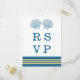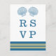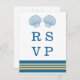 Elegante y clásico postales de respuesta Boda de las conchas náuticas con un par de conchas simples y un conjunto de rayas en azul marino oscuro y oro. Esta tarjeta postal con temática náutica RSVP se puede personalizar fácilmente con los detalles de tu boda. Para obtener más opciones de personalización, haga clic en el botón Personalizar.