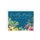 Flores tropicales de color azul océano y tarjeta RSVP de vegetación con tipografía elegante. El reverso cuenta con tus detalles y una divertida petición de canciones de invitados. Diseñado por Thisisnotme©