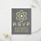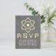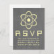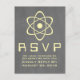 Tarjeta de respuesta Boda de tablero atómico de color dulce y nerd con un sencillo símbolo atómico de color amarillo en el fondo de un diseño de pizarra. ¡Esta tarjeta postal de boda tan original y divertida es perfecta para la pareja de entusiastas de la ciencia! Fácil de personalizar, simplemente añada los detalles de su boda en los espacios proporcionados. Haga clic en "Personalizar" para encontrar más opciones de personalización.