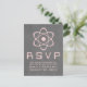 Tarjeta de respuesta Boda de tablero atómico de color dulce y nerd con un simple símbolo atómico en color rosa claro sobre un fondo de pizarra. ¡Esta tarjeta postal de boda tan original y divertida es perfecta para la pareja de entusiastas de la ciencia! Fácil de personalizar, simplemente añada los detalles de su boda en los espacios proporcionados. Haga clic en "Personalizar" para encontrar más opciones de personalización.