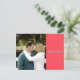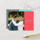 Esta tarjeta postal de Save the Date está diseñada simplemente con bloques de color coral, turquesa y gris. Presenta una imagen en la parte frontal con nombres impresos sobre un bloque de color coral. Los detalles se indican en la parte posterior sobre un bloque de color gris. Los bloques de color turquesa y gris dividen la parte posterior, superpuestos con texto turquesa.