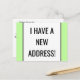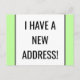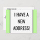 Este diseño de tarjeta postal de cambio de dirección minimalista presenta el mensaje "¡TENGO UNA NUEVA DIRECCIÓN!" en la parte delantera y un mensaje personalizable en la parte trasera. Tarjetas postales como esta podrían utilizarse para informar a amigos y familiares de una nueva dirección, un nuevo número de teléfono y otra información relevante.