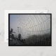 Hermosa telaraña blanca y negra brillando con rocío. Cualquier tarjeta postal de ocasión.