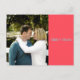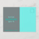 Esta tarjeta postal de Save the Date está diseñada simplemente con bloques de color coral, teal y gris. Presenta una imagen en la parte delantera con nombres impresos sobre un bloque de color coral. Los detalles se indican en la parte posterior sobre un bloque de color gris. Los bloques de color teal y gris dividen la parte posterior, superpuestos con texto teal.