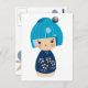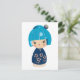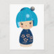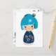 Muñeca Kokeshi con flores "talladas" y mariposas.