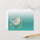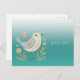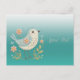 Hermosa tarjeta postal verde con bordado floral de pajarito