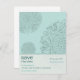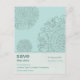 Lo vintage y lo moderno se unen para crear un aspecto contemporáneo en esta encantadora postal. Un clásico adorno victoriano se utiliza como elemento gráfico repetitivo sobre un suave fondo aqua. La información personalizable se destaca en un panel más claro para crear un imán para recordar la fecha inolvidable. La parte posterior queda en blanco para su propio mensaje personal y la información de dirección. Vea mi tienda para tarjetas, sellos y favores a juego. Disponible en colores alternativos.