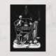 tarjeta postal vintage de la banda skeleton: aquí tenemos el arte de la muerte en blanco y negro de 1850, un esqueleto se sienta con instrumentos de esqueleto incluyendo una guitarra, un cuerno y un arpa otros cráneos y huesos, así como un reloj de arena. Las violaciones están separadas por encima.