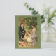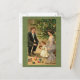 Esta hermosa tarjeta postal personalizada vintage presenta a una madre y un padre jugando con su pequeño paquete de alegría junto al árbol de Navidad. La pequeña niña sostiene una pelota preparándose para lanzársela a su papá, hay bloques dispersos por el suelo. En la esquina inferior derecha se muestran las palabras "A Merry Christmas". Esta adorable imagen vintage está colocada sobre un hermoso fondo navideño ornamental verde para completar esta encantadora tarjeta postal.