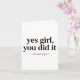 Tarjeta Postcard yes Girl you did it, gift card graduation