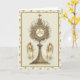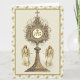 Con una imagen religiosa católica tradicional diseñada por un personalizado de la Santa Monstrancia con la Eucaristía y dos ángeles de cosecha por cada lado. Un bonito borde de lirio blanco acentúa el marco.