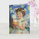 A sweet birthday card for a little girl. The front has an illustration of a pretty girl holding a cupcake with flowers in her hair, white wings and a vintage dress done in an impasto vintage style. The inside has a pretty poem for her.