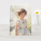 A sweet birthday card for a little girl. The front has an illustration of a pretty little fairy girl with flowers in her hair, white wings and a vintage dress done in an impasto vintage style. The inside has a pretty poem for her.
