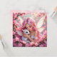 A pretty pink anime elven fairy holding her cute white baby dragon blank card.