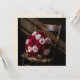 Pretty blank card with a beautiful bouquet of pink and red roses laying on an old rustic wood chair.