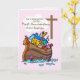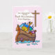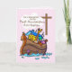 El Arca de Noé en la tarjeta de bautismo de un chica rosado es tan preciosa. Los animales miran desde el Arca de Noé, viendo la cruz a través de las nubes. Dulce tarjeta para darle a una chica mientras celebra el primer aniversario de su bautismo.