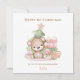 Tarjeta Primer Chica de Navidad de Teddy Bear Rosado