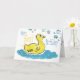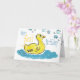 un lindo patito sube a través de esta tarjeta por un PRIMER DESEO DE CUMPLEAÑOS. la frase interior dice: (Una pequeña vela, colocada en la torta... ¡Un deseo de primer cumpleaños! Feliz cumpleaños por tu primera vez), pero PUEDE CAMBIARSE! arte texturizado dibujado a mano por imágenes de kaps