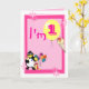 1ra tarjeta de cumpleaños con el payaso, pingüino y helado y globos divertidos, en un fondo azul. Personalice fácilmente este diseño añadiendo o cambiando el texto.