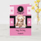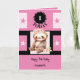 Primera tarjeta de felicitación de cumpleaños. 1 hoy. Añade un nombre y cambia la edad a la adecuada. 1.ª tarjeta de cumpleaños para una niña pequeña. Rosa y negro con estrellas y un lindo perezoso de bebé.