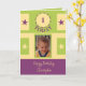 Primera tarjeta de felicitación de cumpleaños. 1 hoy. Añadir foto y nombre. 1.ª tarjeta de cumpleaños para un niño pequeño. Verde, violeta y amarilla con estrellas.