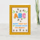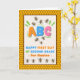 Personalizado frontal, añadir un nombre, Feliz Primer Día de Segundo Grado, tarjeta de saludo de papel con abejas y peine de miel. Las abejas se reúnen alrededor de la letra B en la cubierta. Cute verso de abeja dentro. Cambiar o agregar al texto de la cubierta y dentro como se desee. Arte, imagen y verso © Shoaff Ballanger Studios, 2024.