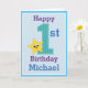 Tarjeta Primer niño de cumpleaños, azul con estrella amari