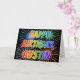 Este diseño de tarjeta de felicitación de cumpleaños vibrante, multicolor y divertido incluye el mensaje "FELIZ CUMPLEAÑOS", y el nombre común "AUSTIN" con las letras que tienen un espectro de colores del arcoiris como el patrón de color gradiente. El fondo del frente también presenta un patrón colorido inspirado en la apariencia de los fuegos artificiales de celebración que estallan. El interior presenta un mensaje de saludo personalizado, o tal vez se pueda borrar y dejar en blanco si se va a escribir un mensaje a mano. Una tarjeta de felicitación de cumpleaños como esta podría ser una manera divertida de enviar un mensaje de bienvenida de cumpleaños de personalizable a alguien llamado Austin. [~Z0000350]