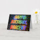 Este diseño de tarjeta de felicitación de cumpleaños vibrante, multicolor y divertido incluye el mensaje "FELIZ CUMPLEAÑOS", y el nombre común "VINCENT" con las letras que tienen un espectro de colores del arcoiris como el patrón de color gradiente. El fondo del frente también presenta un patrón colorido inspirado en la apariencia de fuegos artificiales de celebración reventados. En el interior aparece un mensaje de saludo personalizado, o tal vez se pueda borrar y dejar en blanco si se va a escribir un mensaje a mano. Esta puede ser una manera divertida de reconocer el cumpleaños de alguien llamado Vincent. [~Z0000350]