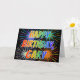 Este divertido, vibrante y multicolor diseño de tarjetas de felicitación de cumpleaños incluye el mensaje "FELIZ CUMPLEAÑOS", y el nombre común "GARY" con las letras que tienen un colorido espectro arcoiris como patrón de color gradiente. El fondo del frente también presenta un patrón colorido inspirado en la apariencia de fuegos artificiales de celebración reventados. El interior presenta un mensaje de saludo personalizado, o tal vez se pueda borrar y dejar en blanco si se va a escribir un mensaje a mano. Una tarjeta de felicitación como esta podría ser una forma divertida de enviar un mensaje de cumpleaños personalizado a alguien llamado Gary. [~Z0000350]