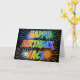 Este vibrante, multicolor y divertido diseño de tarjetas de felicitación de cumpleaños incluye el mensaje "FELIZ CUMPLEAÑOS", y el nombre común "JACE" con las letras que tienen un colorido espectro de arco iris como el patrón de color gradiente. El fondo del frente también presenta un patrón colorido inspirado en la apariencia de fuegos artificiales de celebración reventados. En el interior aparece un mensaje de saludo de personalizable, o tal vez se pueda borrar y dejar en blanco si se va a escribir un mensaje a mano. Una tarjeta de felicitación de cumpleaños como esta podría ser una manera divertida de enviar un mensaje de bienvenida de cumpleaños de personalizable a alguien llamado Jace. [~Z0000350]