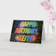 Este diseño multicolor y divertido de tarjetas de felicitación de cumpleaños incluye el mensaje "FELIZ CUMPLEAÑOS", y el nombre común "KEITH" con las letras que tienen un colorido espectro arcoiris como el patrón de color gradiente. El fondo del frente también presenta un patrón colorido inspirado en la apariencia de los fuegos artificiales de celebración que estallan. En el interior aparece un mensaje de saludo de personalizable, o tal vez se pueda borrar y dejar en blanco si se va a escribir un mensaje a mano. Una tarjeta de felicitación como esta podría ser una manera divertida de enviar un mensaje de cumpleaños personalizado a alguien llamado Keith. [~Z0000350]