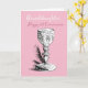 Esta hermosa primera tarjeta de Comunión en rosa con un cáliz, es para tu nieta.