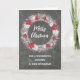 Feliz Navidad para la prima y la tarjeta de su marido con un patrón rústico de pizarra y corona de nieve con poinsettias.