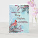 Feliz Navidad para la prima y su tarjeta familiar con vegetación de color de agua rústica y patrón de nieve de color de agua cardinal y vintage.