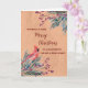 Feliz Navidad para la prima y su tarjeta familiar con vegetación acuática rústica y patrón de papel cardinal y vintage.