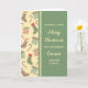Feliz Navidad para la prima y su tarjeta familiar con adorables ilustraciones de medias, regalos y dulces.