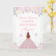 Tarjeta Princesa de cabello marrón rosada dulce dieciséis