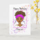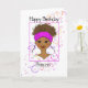 Un lindo chica de piel marrón con una banda de cabeza rosada caliente y pendientes balanceantes - tarjeta de cumpleaños perfecta para tu princesa o novia