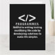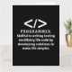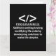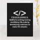 Programador programador de codificación de programadores Diseño original de tarjeta de Nisha Prabhu. Descanse su pasión por la programación con esta vibrante tarjeta de programador! Celebra el arte de la codificación con un diseño que encarna la creatividad y la innovación. Tanto si eres un desarrollador experimentado como un aspirante a codificador, esta tarjeta habla de tu viaje. Una estética moderna que refleja el dinámico mundo de la tecnología. ¡La motivación perfecta para las aventuras de codificación diarias! Ideal para compartir logros de codificación, deseos de cumpleaños, o sólo una simple nota para otros entusiastas de la tecnología. Únase a la comunidad de desarrolladores y deje que su creatividad brille a través de cada línea de código. Agarra tu tarjeta de programador hoy y difunde el amor por la codificación!