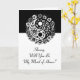 ¿Serás mi tarjeta de propuesta de dama de honor? Floral yin yang en blanco y negro.