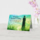 Inspiradora cita personalizado tarjeta de saludo del Día del Padre representa un faro rodeado de hierba alta y presenta Biblia Verse Proverbs 20:7, "Un hombre honrado camina en integridad. Benditos son sus hijos después de él" _