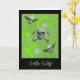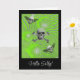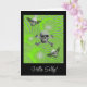 Calaveras aladas volando sobre un fondo verde psicodélico. Se puede adaptar para cualquier ocasión, como por ejemplo el cumpleaños. Diseño gráfico joven y divertido. Sólo tienes que añadir tu propio mensaje al interior y el nombre al frente.