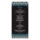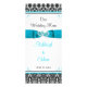 Esta romántica carta de bodas en damasco blanco y negro tiene la imagen de un par de corazones unidos sobre una cinta azul turquesa o verde azulada y una imagen de arco que cruza el ancho de la tarjeta. En las cuatro esquinas de la parte delantera y de la parte trasera del texto hay una floración turquesa. Debajo de la cinta en un fondo blanco, los nombres de la novia y el novio, y la fecha del boda están impresos en turquesa y negro, con "Nuestro menú Boda" en relieve negro sobre la cinta. La parte posterior es de color blanco y negro con un área de texto en negro sólido que contiene los detalles del menú en blanco con acentos de turquesa en el borde superior e inferior, junto con los cuatro floridos de esquina. Si necesita algún elemento adicional coincidente, envíe su solicitud a niteowlstudio@gmail.com o utilice la función de chat Zazzle para ponerse en contacto.